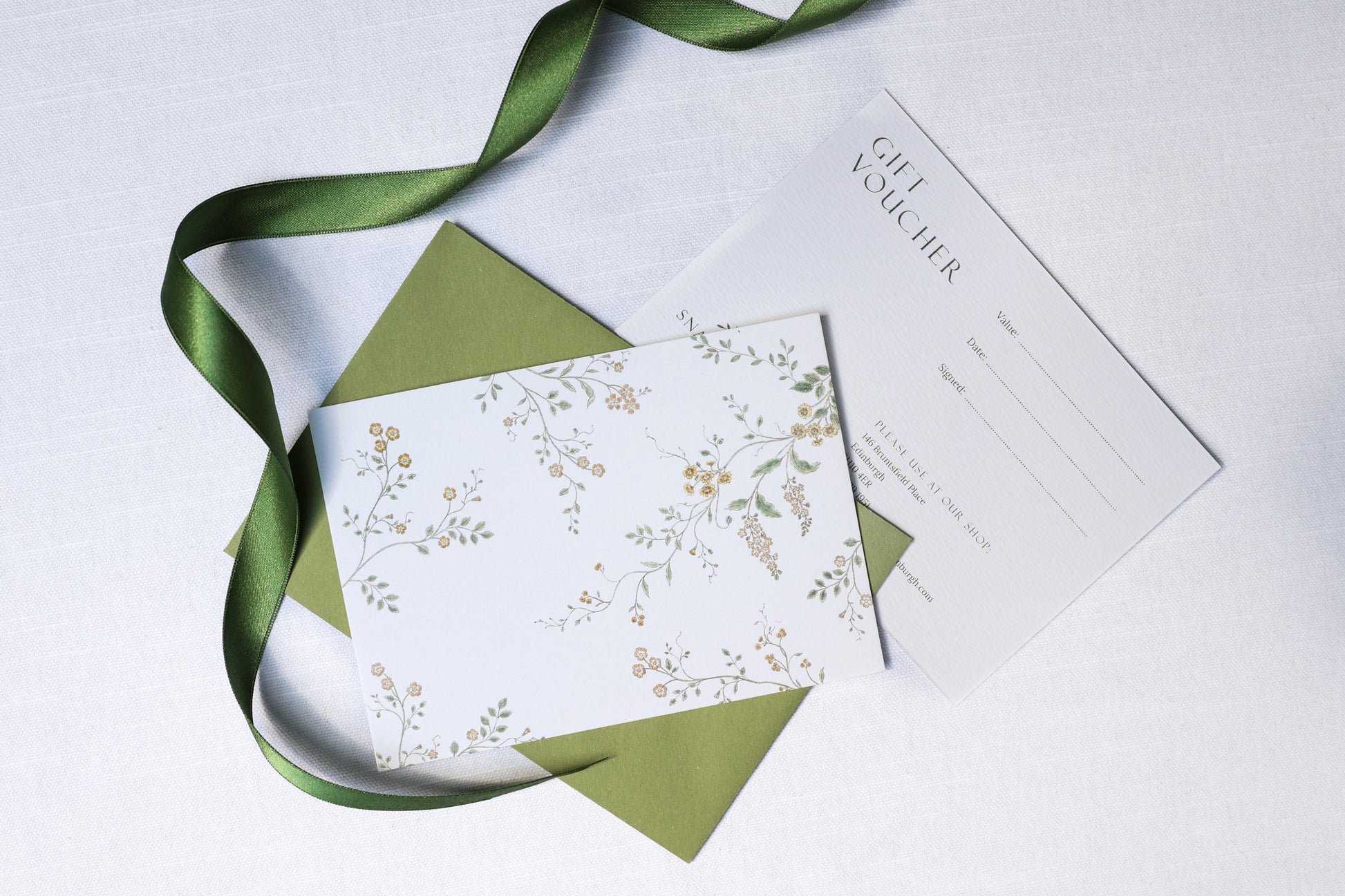 A gift voucher to redeem in store (valid for 2 years) - the perfect gift for any botanical enthusiast. Presented on a beautiful card with a botanical design by Edinburgh based Linsey Kelly, in a quality envelope tied with ribbon.