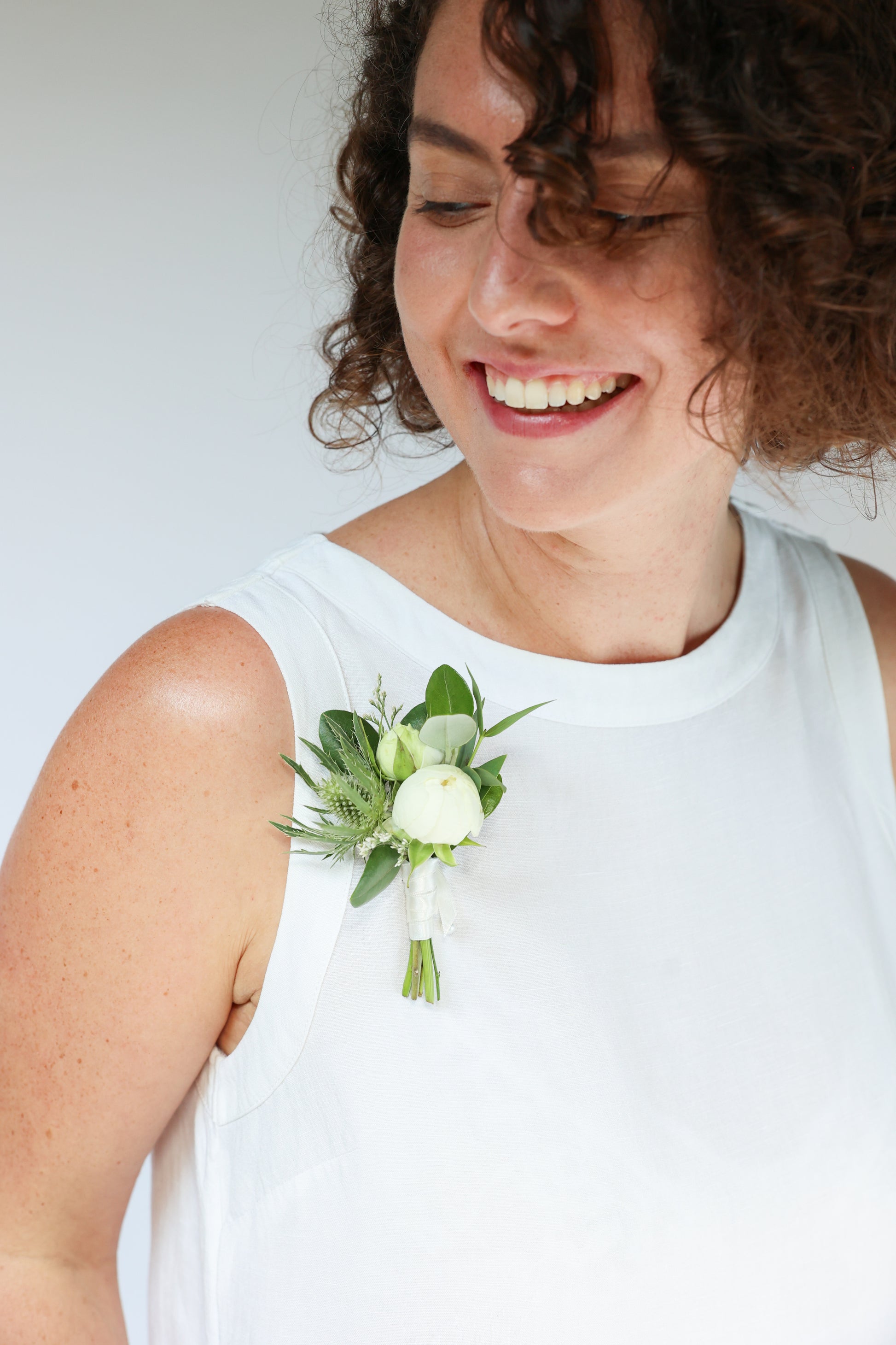 A pretty mini floral bunch to wear on a dress or a jacket lapel, tied and finished with satin ribbon.
