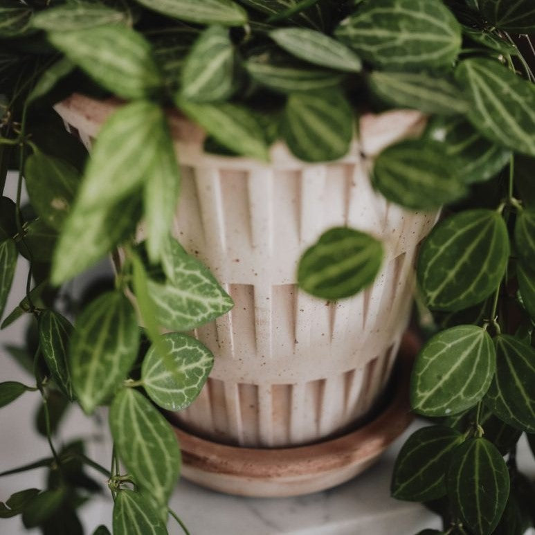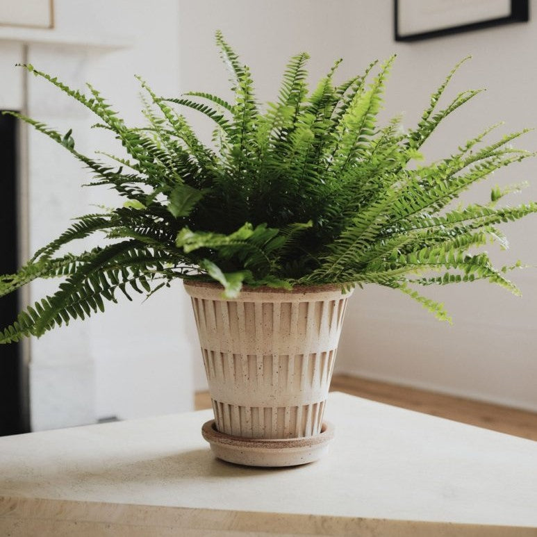Raw terracotta, the Pantheon pot pays homage to the iconic dome that soars into the sky with timeless grandeur at the Pantheon in Rome. Just as the Pantheon dome captivates with its geometric coffered ceiling, the Pantheon pots feature symmetrical rows of coffers delicately carved into the surface.